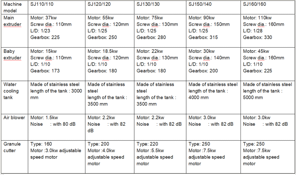 2. It is a automatic line,the production line including first extruder, second extruder, washing tank, blower machine, granule cutter, storage silo and control cabinet.